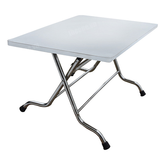 Quy cách: Bàn ăn Inox toàn bộ, chân bàn gấp sử dụng ống Ø31.8×0.45 mm, mặt bàn chữ nhật bo góc tròn