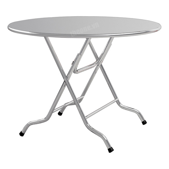 Quy cách: Bàn ăn chất liệu Inox mặt tròn, chân bàn gấp sử dụng ống Inox 31.8×0.45mm