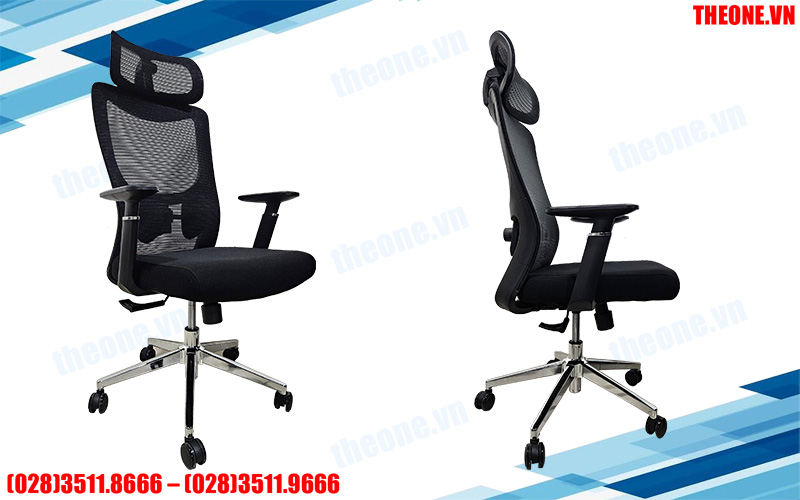 Chất liệu: Khung tựa nhựa bọc vải lưới/ Đệm mút bọc vải/ Tay vịn nhựa/ Chân mạ.