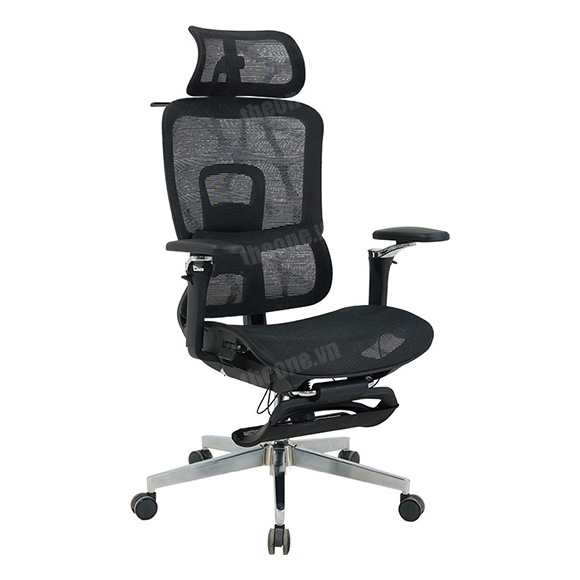 Quy cách: tựa ghế có khả năng ngả hãm nhiều góc độ. Tay 4D, mặt tay bằng PU mềm, đệm có thể điều chỉnh chiều sâu. Ghế có cơ cấu điều chỉnh bát bằng tay gạt tiện lợi gắn 2 bên đệm, có cơ cấu để chân tiện lợi khi ngả thư giãn. Tựa đầu 3D tùy chỉnh nhiều vị trí phù hợp, phía sau có móc treo áo. Chân ghế làm bằng thép mạ Cr-Ni