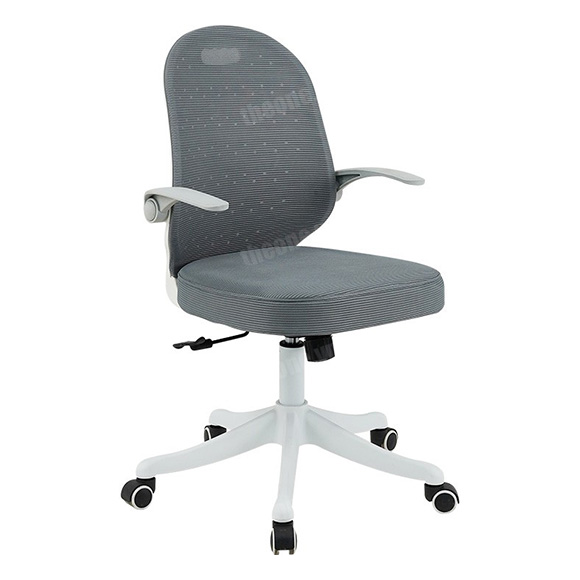 Quy cách: tựa nhựa màu trắng, đệm mút êm ái bọc vải xốp cao cấp. Tay ghế bằng nhựa có thể gấp gọn. Ghế có piston điều chỉnh chiều cao phù hợp. Chân ghế bằng nhựa. Ghế có 2 màu ghi và hồng.